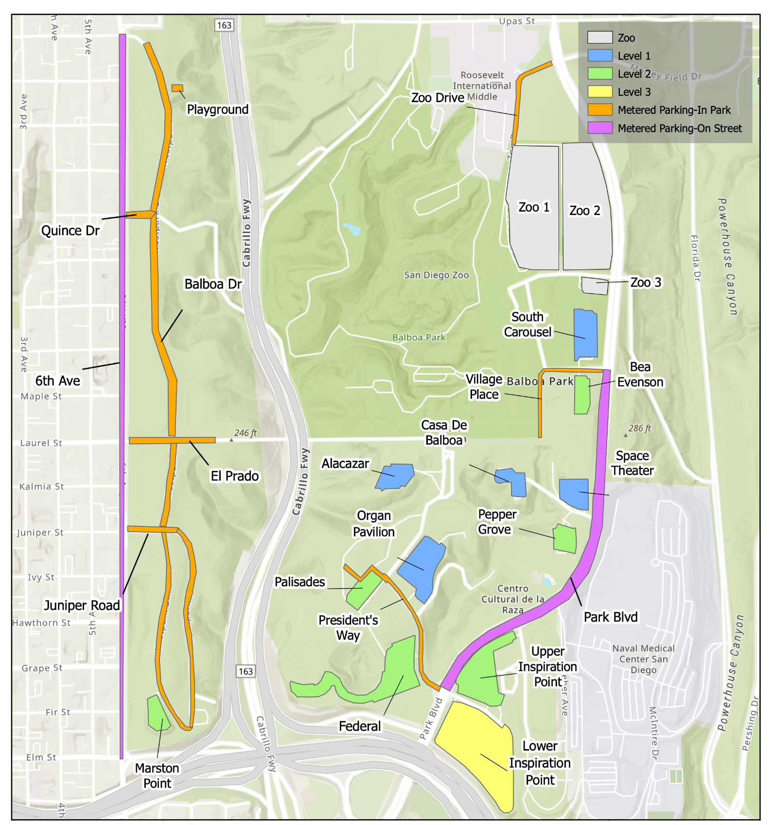 Level 1 - Central Balboa Park Lots (closest to museums)